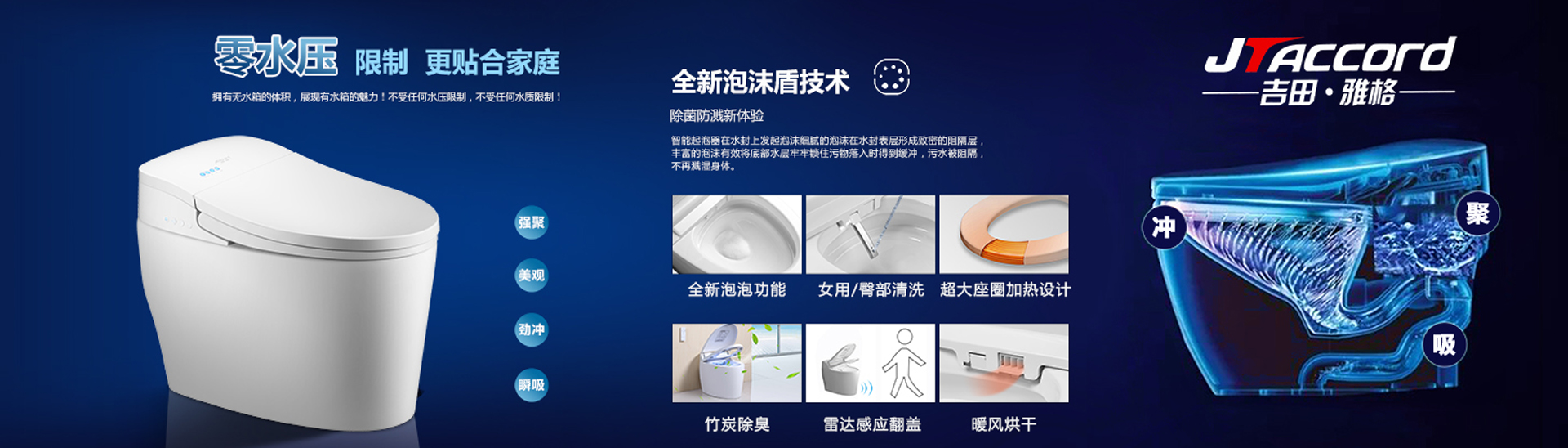 寧波吉田智能潔具科技有限公司主營:智能馬桶蓋、智能馬桶、普通馬桶、智能馬桶沖洗便座等; 技術(shù)支持:浙江七米